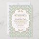 Elegant and beautiful french Moroccan inspired wedding invitations with a repeating eggshell blue, pale aqua, bluish green and gold geometric pattern design and gold hued floral flourishes. This upscale and luxe invite is perfect for a Moroccan, Arabian Nights or Aladdin themed wedding. The back of these custom, fancy frame invitations and announcements can be personalised with the soon to be married bride and groom's monogram and names on the quatrefoil shape. Artwork and design © Chrissy H. Studios, LLC. All Rights Reserved.