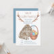 Cute easter invitation for boy's birthday or kids easter egg hunt. The heading is framed with antlers and reads "calling all eggspert hunters .. grab your basket and join us for [your occasion]" All of the wording is editable for you to customise as much as you wish. The design features a cute easter bunny with a basket of easter eggs. The invitation has a colour palette of brown and blue and this can also be editted (click "customise further")