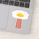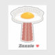 Vector cartoon illustration of a delicious sunny side up fried egg UFO with a yummy bacon slice tractor beam with EGGSTRATERRESTRIAL text. Keywords: egg, bacon, breakfast, UFO, alien, sunny, side, cartoon, space, extraterrestrial, food, cute, yolk, sci-fi, science, fiction, martian, humour, meat, pork, abduction