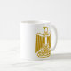 The "Eagle of Saladin" holds a scroll on which the name of the state appears in Arabic script, Gumhūriyyat Miṣr al-ʿArabiyyah ("Arab Republic of Egypt"). The eagle carries on its breast a shield with the flag's colours — but with a vertical instead of a horizontal configuration. When appearing on the national flag, the eagle is rendered entirely in gold, and white. During the union with Syria in the United Arab Republic (1958–1961), and in the ten years afterwards when Egypt retained the union's official name, the two green stars of the union's flag appeared in the white band of the eagle's shield. Between 1972-1984 the eagle was replaced by the golden hawk of Qureish, as part of the symbolism of the Federation of Arab Republics.