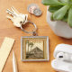 This vintage image of the Great pyramid of Giza in Egypt is combined with layers of plaster and paint, to create a key ring sporting Tina Chaden's signature style. This great landmark is embellished with a decorative border influenced by Egyptian wall paintings of the period.