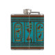Egyptian Golden Leather hieroglyphs on teal Hip Flask