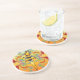 I'm not sure how much moisture these will soak up, haven't had a chance to try them out, but they look good and I like the cork backing. The printing is fine ~ and really looks cool with an artisan's hand made "Hurricane Martini" glass sitting on top of my painting (on the coaster) in my studio.