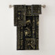Egyptian hieroglyphs and deities gold on black bath towel set
