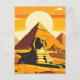 vintage postcard design of the Great Sphinx and the pyramids of Egypt under a dramatic desert sunset. Perfect for collectors, travelers, and art enthusiasts.