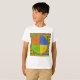 100% cotton so perfect for summer, It is a nicely designed t-shirt, the fabric is soft and the seams finished well, the body of the t shirt has no side seams. I bought a medium size for my two grandsons, aged 9 and 8 it will be slightly big on them but I would rather that than too small