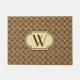 Egyptian-inspired Art Deco tile pattern door mat with monogram in dark chocolate brown and camel tan - mixed media digital design