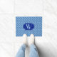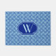 Egyptian-inspired Art Deco tile pattern door mat with monogram in deep cobalt blue on a light sky blue background - mixed media digital design