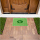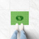 Egyptian-inspired Art Deco tile pattern door mat with monogram in dark emerald green and pastel lime - mixed media digital design