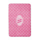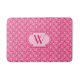 Egyptian-inspired Art Deco tile pattern bath mat with monogram in deep coral pink and light pink - mixed media digital design