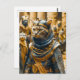 fierce Egyptian warrior cat adorned with golden armour, ready to protect its kingdom. This striking artwork combines feline grace with the strength of ancient Egyptian warriors
