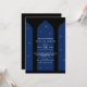 This stylish Eid al-Fitr invitation features a nighttime scene with a navy blue sky and sparking white stars visible through decorative windows. Personalise the white and gold text with your event details for an elegant Eid invite to send to your loved ones.