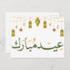 Eid Mubarak Postcard design with moon ,stars and Islamic lanterns with green Arabic calligraphy (عيد مبارك), you can personalise this card with your wishes and send it to anyone you love.