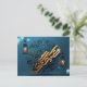 Eid Mubarak Arabic Pattern Calligraphy Blue Gold Holiday Postcard