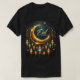 A stunning Eid Mubarak Mens Tshirt design featuring a beautifully decorated golden crescent moon adorned with intricate patterns and glowing lanterns. The luxurious combination of gold, blue, and warm lights creates a festive and elegant ambiance, making it a perfect gift or decoration for Eid celebrations.