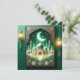 Eid Mubarak Crescent Mosque Floral Frame Green Holiday Card