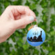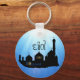 Black silhouette of a mosque on a blue sky with sun and sunrays, greetings and wishes for Eid.