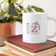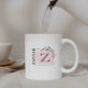 Presenting our exquisite Jumbo Ceramic Mug, a masterpiece of contemporary design featuring two distinct yet cohesive designs on a single mug. One side beautifully showcases a minimalist, modern mosque line art illustration, gracefully set within a serene soft pink circle, complemented by elegant "Eid Mubarak" typography. The reverse side features a sophisticated personalised initial and custom name (as seen with 'ZAYNAB' and 'Z' for example), nestled within delicate botanical line art. This customisable mug perfectly balances modern aesthetics with a respectful nod to Eid.