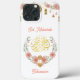 A beautiful and cute watercolor pink flowers wreath with islamic lamp , moon, stars and Arabic Bismillah golden calligraphy Eid Mubarak | Ramadan iPhone 13 pro max. It's a beautiful Eid Mubarak and Ramadan Mubarak wishes personalised name gift for her. You can easily change the text and colour or remove by clicking customisation tools.