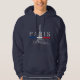 The Eiffel Tower decorates this Parisian-themed sweatshirt. Wear this Paris hooded sweatshirt on vacation or any day. A great gift for any vacation or to show French patriotism and pride.