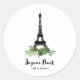 These elegant holiday stickers say "Joyeux Noël" in French black modern typography, along with an image of the Eiffel Tower surrounded by green Christmas pine branches and pine cones. Personalise with your name. We have used some art from LABFcreations.
