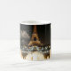 Illuminated yellow fountains frame the worlds most iconic landmark at night, the Eiffel Tower in Paris, France.