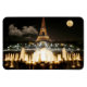 Illuminated yellow fountains frame the worlds most iconic landmark at night, the Eiffel Tower in Paris, France.