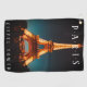 Paris: The Eiffel Tower At Night glowing with light makes a striking design with white text and dark background. Text and dots can be changed or deleted. Click “Customise” to change colours and type styles.