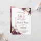 Glitter Eiffel tower, burgundy flowers, and gold confetti on rose gold background birthday party invitation.