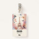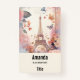 Name tag with a stylised Eiffel tower image surrounded by pretty butterflies and delicate garden flowers.