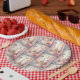 Paper plates with a stylised Eiffel tower image surrounded by pretty butterflies and delicate garden flowers.
