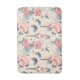 A bath mat with an elegant pattern. Pink roses, blue-grey butterflies and an Eiffel tower. A French themed pattern.
