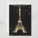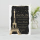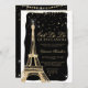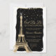 A modern, chic and glamourous QUINCEAÑERA with a hand drawn gold glitter french Paris theme Eiffel Tower with rose gold glitter diamond sparkles on back quinceanera background.