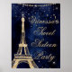 Eiffel Tower chic yellow gold sweet 16 welcome sign on navy blue watercolor