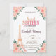 Glitter Eiffel tower, flowers, and gold confetti on rose gold background Sweet 16 birthday party invitation.