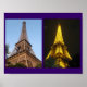 Photographs of the Eiffel Tower taken in the daytime and at night are placed together to make a beautiful poster.  Photos taken by LRF.