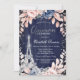 Eiffel Tower Diamonds Navy Blue Roses Quinceanera Invitation