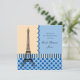 Elegant and chic French themed invitation. Features a drawing of the Eiffel Tower in a blue and cream background. Stripes and polka dots pattern give this design a modern look. Find matching products in this store.