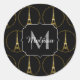 Eiffel Tower gold glitter sparkles Black Monogram Classic Round Sticker