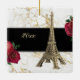 Eiffel Tower Gold, White Marble Rose Christmas Ceramic Ornament