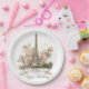 Eiffel Tower "Happy Birthday" with Custom Name Paper Plate