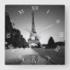 Eiffel Tower In B&W Spotlight Square Wall Clock