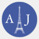 Classy and elegant monogram sticker. Features the Eiffel Tower on a solid colour background. Great for a Paris or French wedding theme. Add the bride and groom initials. Use it to seal envelopes or for party favours. Add your own wording. CONTACT "MARLENEDESIGNER" IF YOU WANT THIS DESIGN IN ANOTHER COLOR.