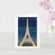 The Eiffel Tower against a starlit sky. The lights of Paris below.