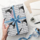 Eiffel tower gift wrap in black and white on glossy paper for French flair.Large Eiffel Tower with a background print of mini towers.