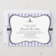 Girly Paris themed Bridal Shower invitation. Shades of Purple stripes with a Polka Dot band going vertically across (behind the fancy bracket). Whimsy Eiffel Tower illustration to play along the Paris theme. I've chosen a Basic White cardstock (note if you don't like a slight gloss, which Basic White has, I would suggest either White Linen or Recycled cardstock) If you have colour changes or need help as far as the design goes please email me. paula@labellarue.com
