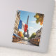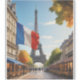Capture the essence of Paris with this vibrant artwork featuring the Eiffel Tower and a fluttering French flag amidst bustling city streets. Perfect for lovers of travel and French culture, bring the charm of Paris into your home with this stylish print.