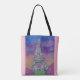 A cute and fun colourful French Paris Eiffel tower folk art painting fun France arc de triomphe tour Eiffel epic landmark romantic spring in Paris cute fun happy hand painted art design deluxe carry all canvas tote bag. Get an epic folk art unique style totebag today.