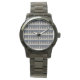 The original pattern by ZoeSPEAK on this black bracelet Watch was made from an original photograph of the Eiffel Tower. The iconic structure was built by Gustave Eiffel in 1889, as the entrance arch to the 1889 World's Fair in Paris, France. The pattern is dark blue, with cream coloured towers repeated in rows.