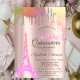 Eiffel Tower,Rainbow Drips Rose Gold Quinceañera Invitation